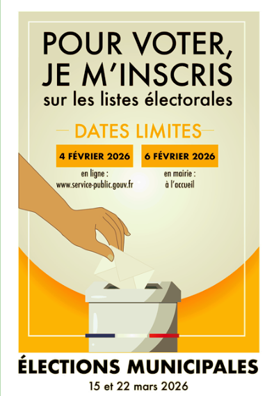 Les élections municipales se tiendront les 15 et 22 mars 2026. Pour participer au vote, assurez-vous d’être inscrit(e) sur les listes électorales.